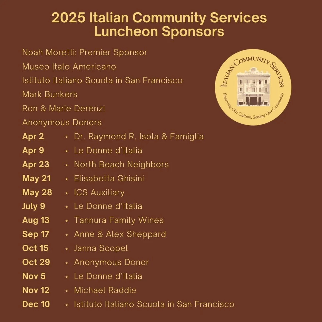 Italian Community Services Auxiliary will be sponsoring the Wednesday May 28th, 2025 Luncheon.